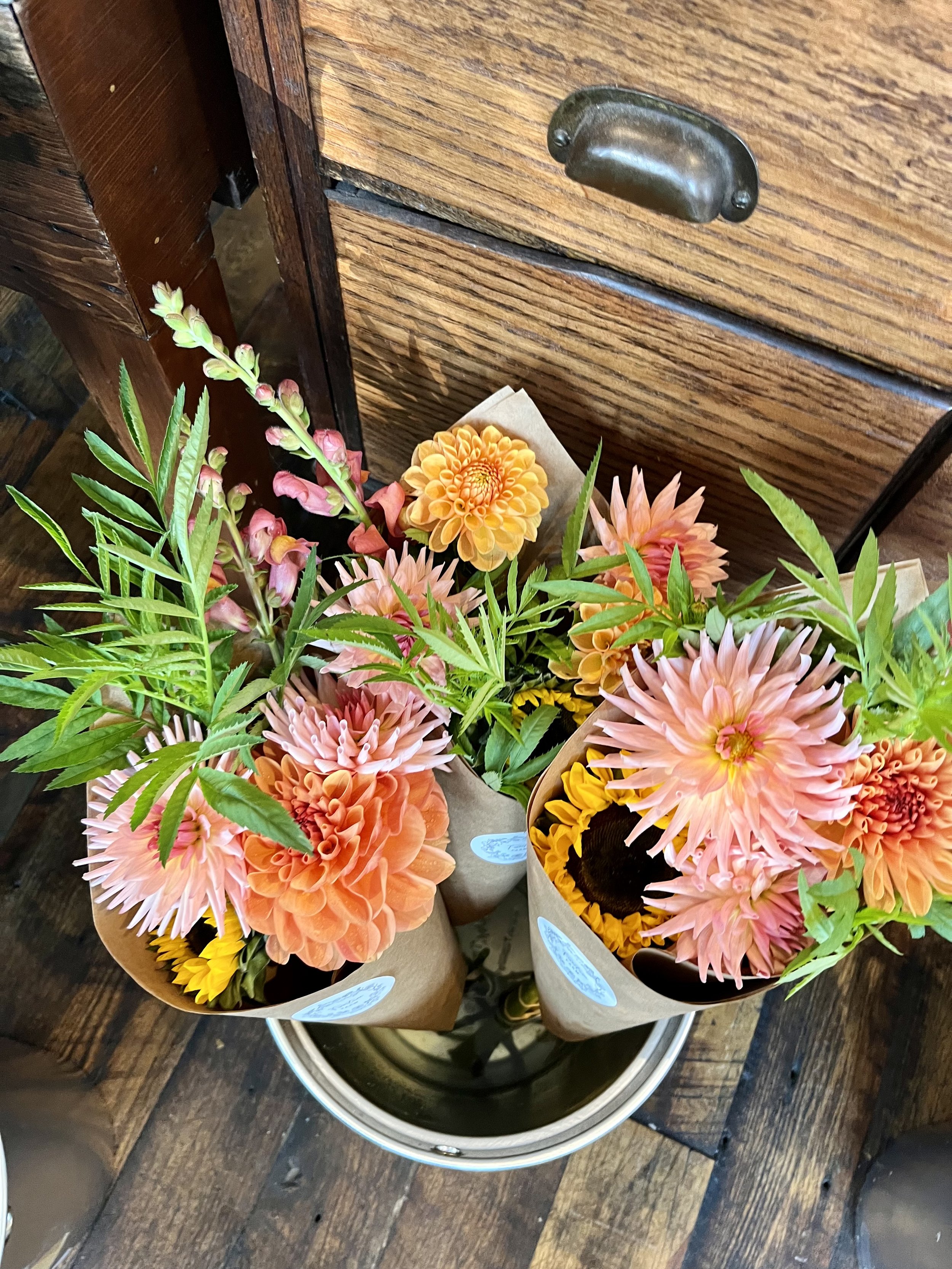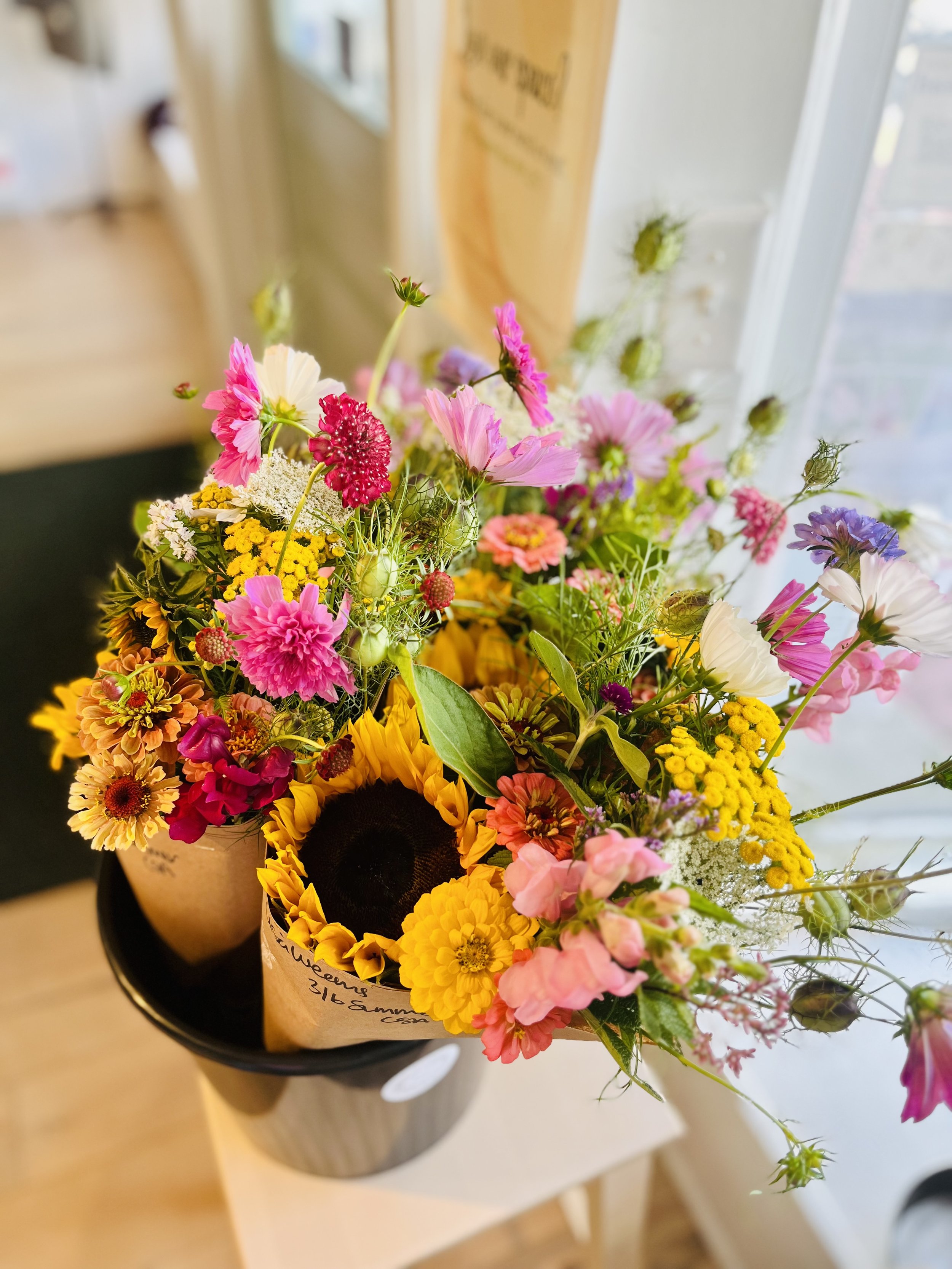 There’s no better way to to celebrate Summer than with our beautiful Summer CSA flower share! Our 6 week share runs from July- August. These bouquets will be bursting with mixed varieties of zinnias, snapdragons, cosmos, celosia, sunflowers, gomphrena, dahlias and a few other fun surprises.